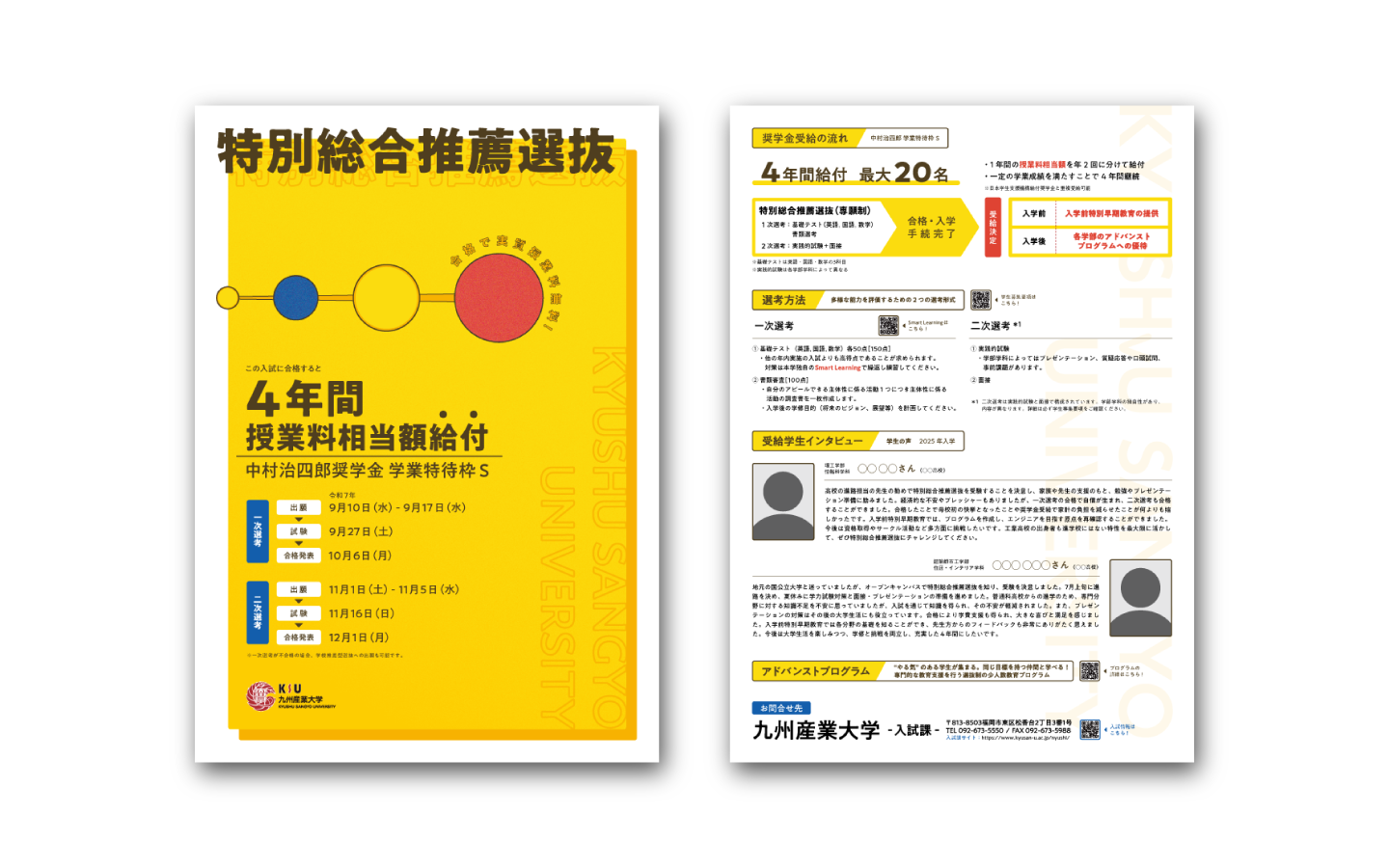 九州産業大学の推薦制度一つである「特別総合推薦選抜」のチラシ作成を個人依頼で手掛けました。
